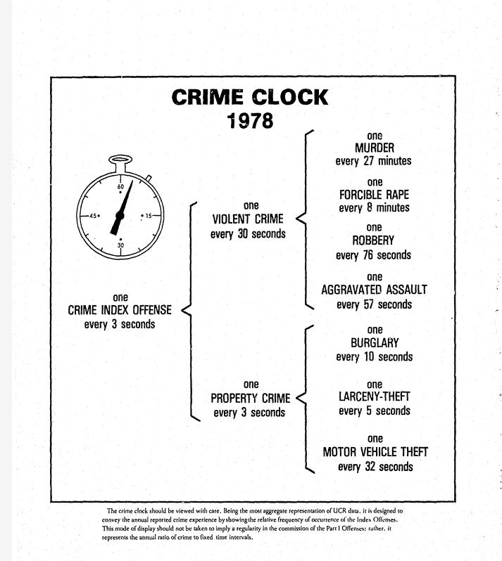 Ted Bundy is also just one man. Violent crime in the U.S. was pretty high in 1978, with this scary infographic from the baby FBI UCR: